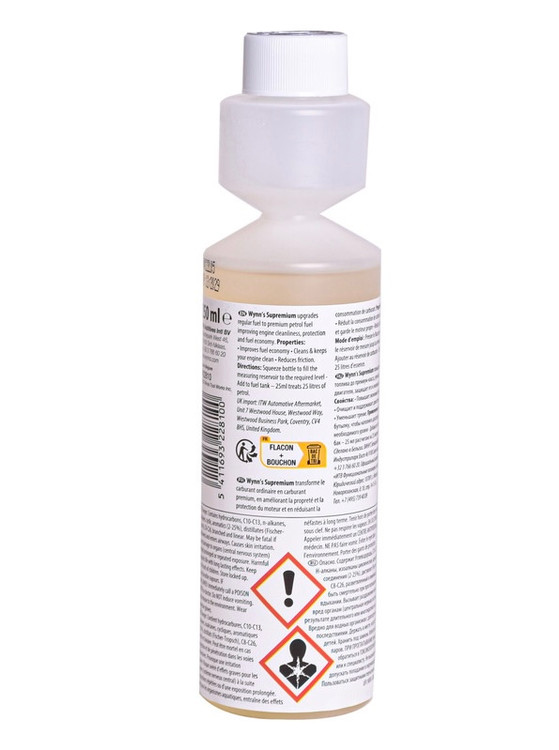 سری جدید و بسته بندی جدید اکتان بوستر و مکمل سوخت وینز سوپرمیوم میباشد . مکمل سوخت مخصوص بنزین خودرو Supremium وينز-Wynns ،عدم ايجاد آسيب برای كاتاليزور اگزوز و سنسور اكسيژن در کنار كاهش مصرف سوخت در ضمن بدون ضرر براي كاتاليستهاست.از آسیبهای ناشی از موتور پینگ و سازگاری با مبدلهای کاتالیزوری جلوگیری میکند. مناسب براي استفاده در موتورهاي بنزيني با سيستم سوخت رساني مستقيم (مستقيم داخل اتاق احتراق) و غير مستقيم (سوخت رساني معمول و متداول) و وسايط نقليهي هيبريدي می باشد.کاهش اصطحکاک داخلي بين اجزا سيستم سوخت رساني.تميز کننده و تميز نگهدارنده انژکتور ها ، سوپاپها و سيستم سوخت رساني محافظ و بهينه کننده عملکرد و قدرت (راندمان) موتور جلوگيري ايجاد خلل و موجب افزايش طول عمر قطعات سيستم سوخت رساني برطرف کننده آب و رطوبت داخل باک سوخت روانکاري و محافظت از پمپ سوخت و انژکتورها میباشد .