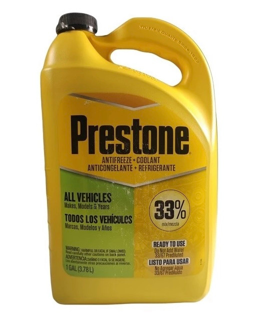 آب رادیاتور و ضد یخ پرستون مدل Coolant 33%، کولانتی سبز رنگ است که توسط کمپانی پرستون آمریکا تولید شده و دارای فرمولاسیون پیشرفتهای است که شامل مهارکنندههایی با ماندگاری بالا در برابر زنگ زدگی، خوردگی و افزایش دما میباشد و دارای بالاترین تاییدیههای استانداردها در زمینه تولید کولانت است. این کولانت بدون نیاز به اضافه کردن آب، بهترین بازدهی را خواهد داشت. عمر این کولانت حدود 240,000 کیلومتر یا 5 سال میباشد. از ویژگیهای آب رادیاتور و ضد یخ پرستون مدل Coolant 33% میتوان به سازگاری و تضمین شده برای همه اتومبیلها، سازگار با هر رنگ خنک کننده، حفاظت از موتور خودرو در تمام موارد دمایی از 18- تا 126+ سانتیگراد، عدم نیاز به اضافه کردن آب، افزایش طول عمر موتور خودرو، جلوگیری از خوردگی، پایین آوردن دمای موتور و کاهش زمان روشن بودن فن موتور خودرو، عدم لخته شدن در ترکیب با برندهای دیگر، 5 سال ماندگاری در خودرو، مناسب برای انواع آلیاژهای موتور و رادیاتور اشاره کرد. این محصول با بستهبندی داخل عکسها سری جدید کولانت 33 درصد پرستون است که دارای فرمولاسیون جدید و بازده بهتری نسبت به کولانت 33 درصد سری قبل است.